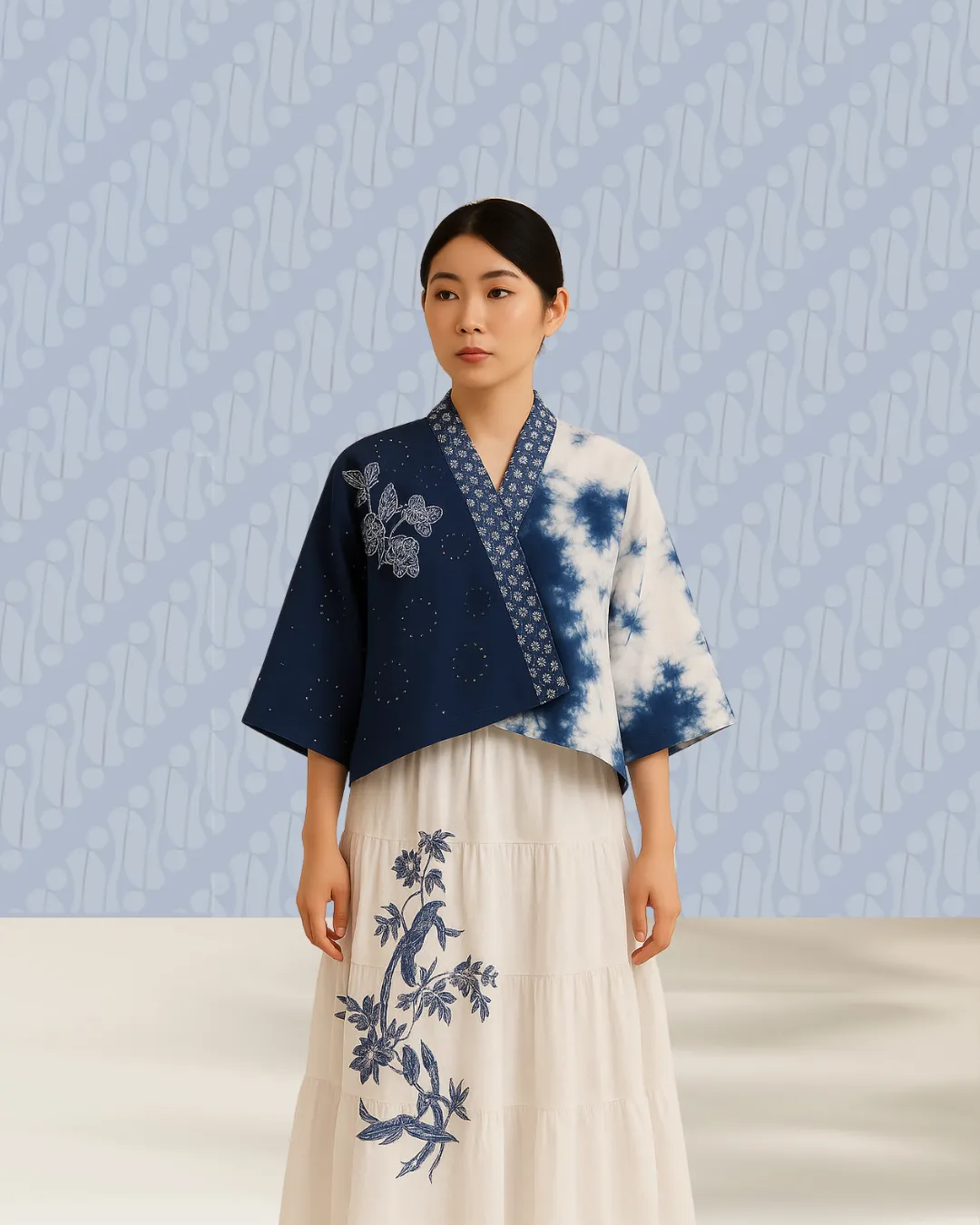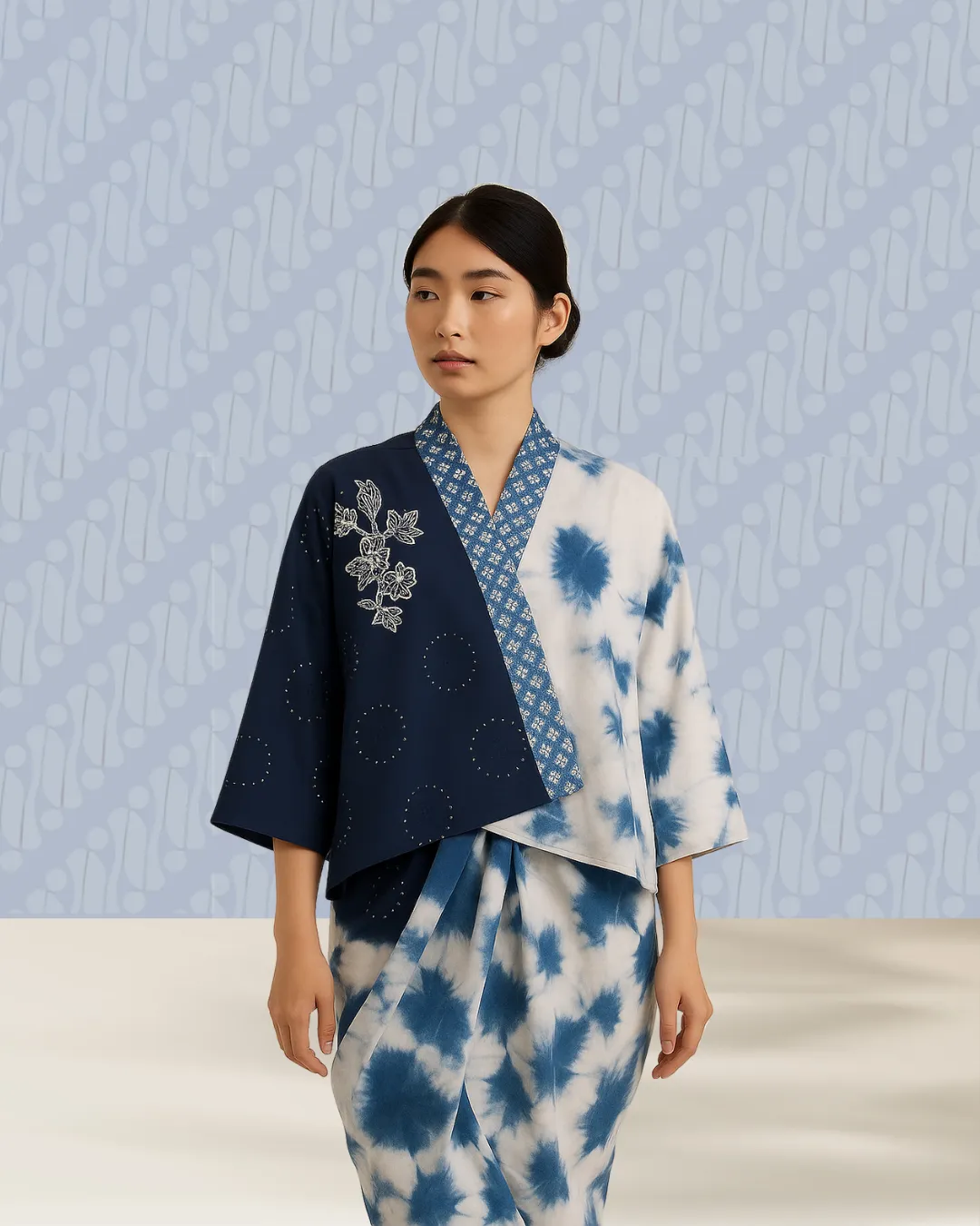 This Batik Shibori Blouse blends the rich heritage of Indonesian batik with the artistic beauty of shibori dyeing. Made from soft, breathable fabric, it offers comfort for daily wear while maintaining an elegant and timeless look. The unique hand-dyed patterns make each piece truly one-of-a-kind, perfect for both casual outings and semi-formal occasions.